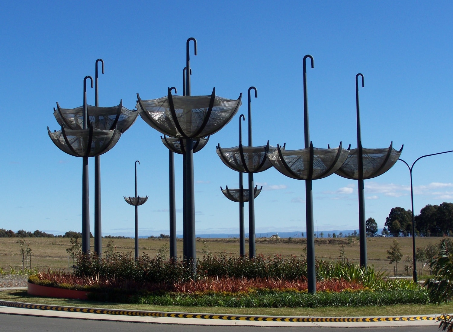 The quirky "Float" light poles located on the corner of Stanhope Parkway and Conrad Road, Ponds in Sydney are protected by Ferreko No. 3, a micaceous iron oxide epoxy coating with a subtle reflective sparkle that enhances the spectacular multicoloured lighting effect at night.