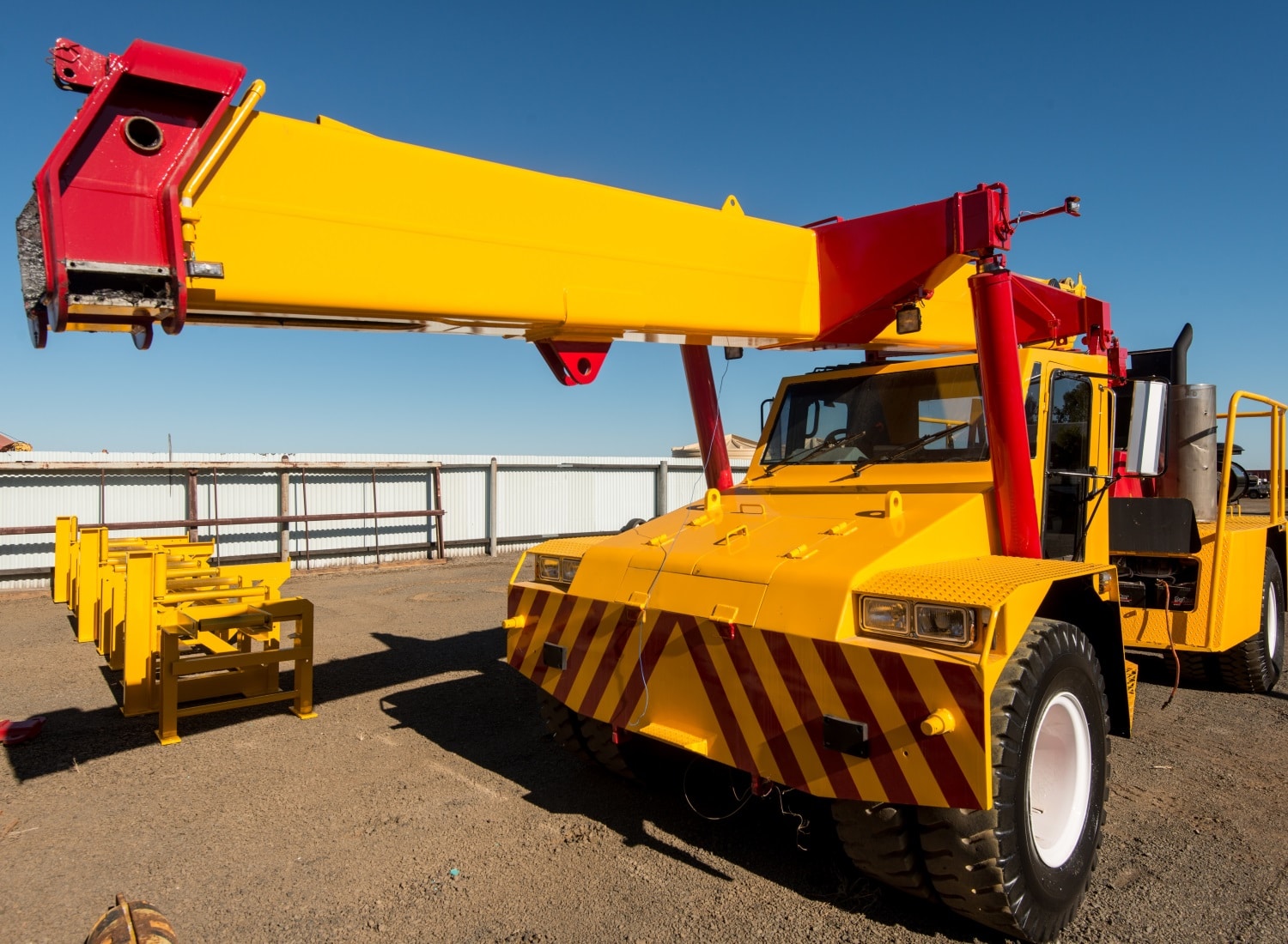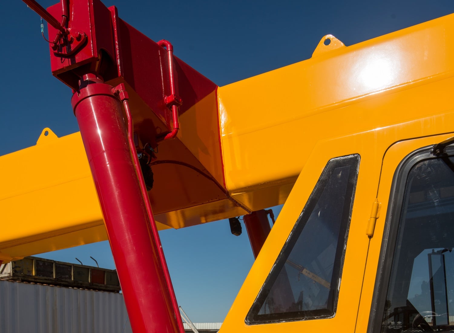 These Franna lifters look fresh and bright in their distinctive livery, having been repainted with Luxepoxy 4 White Primer and Quantum 221 high gloss automotive grade polyurethane.
