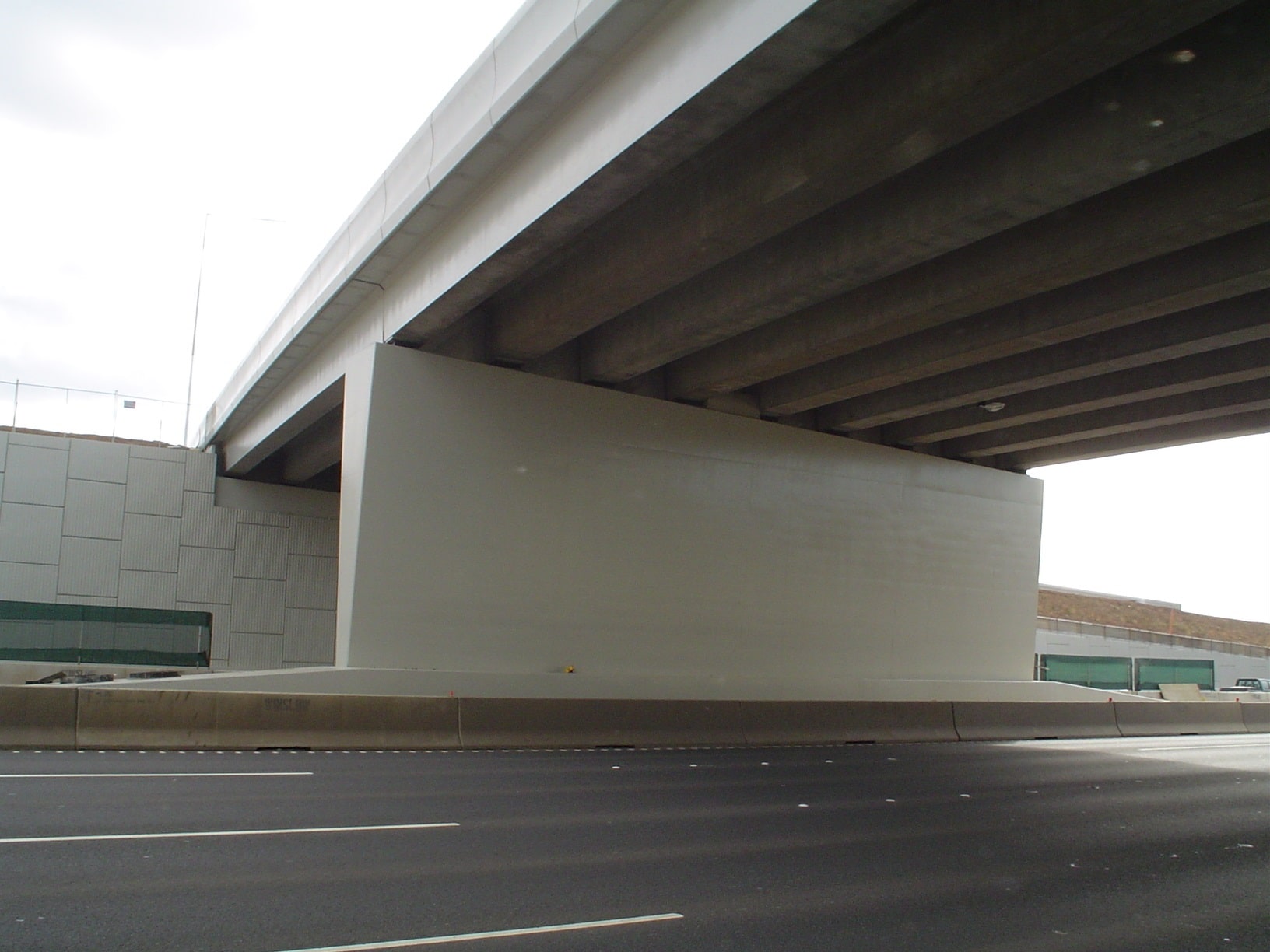 Bendigo Freeway Extension Overpass is prtected against spalling and graffiti attack by the use of Durebild STE surface tolerant epoxy adn Acrathane IF, a two pack epoxy acrylic with excellent resistance to graffiti removal agents.