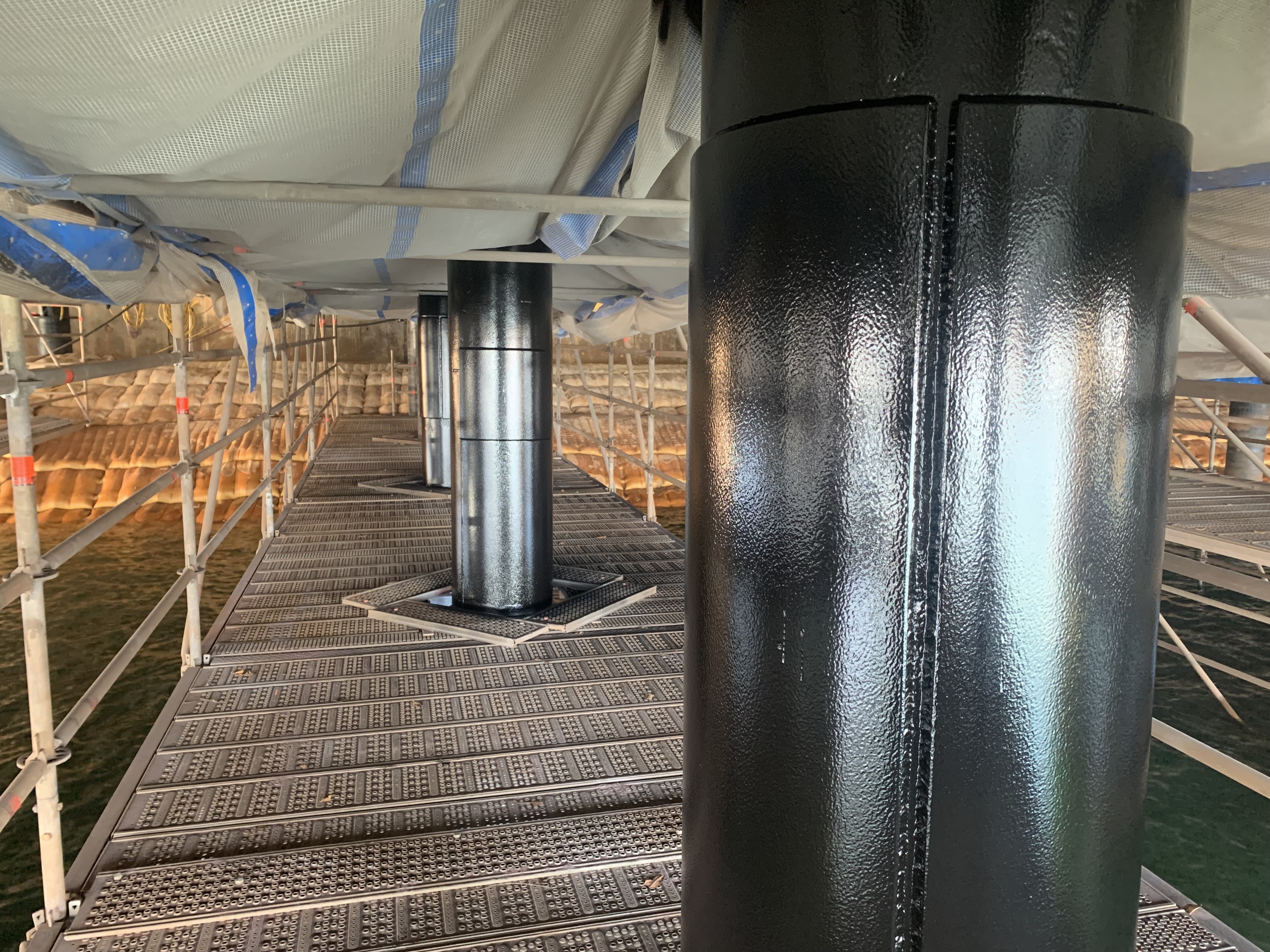 At the Port of Port Hedland, PCM Group applicators raced against one of Australia's largest tide changes to recoat the steel piles supporting Berth 3. Dulux® Duremax® GFX delivered superior corrosion resistance in a single coat. Image courtesy of PCM Group.