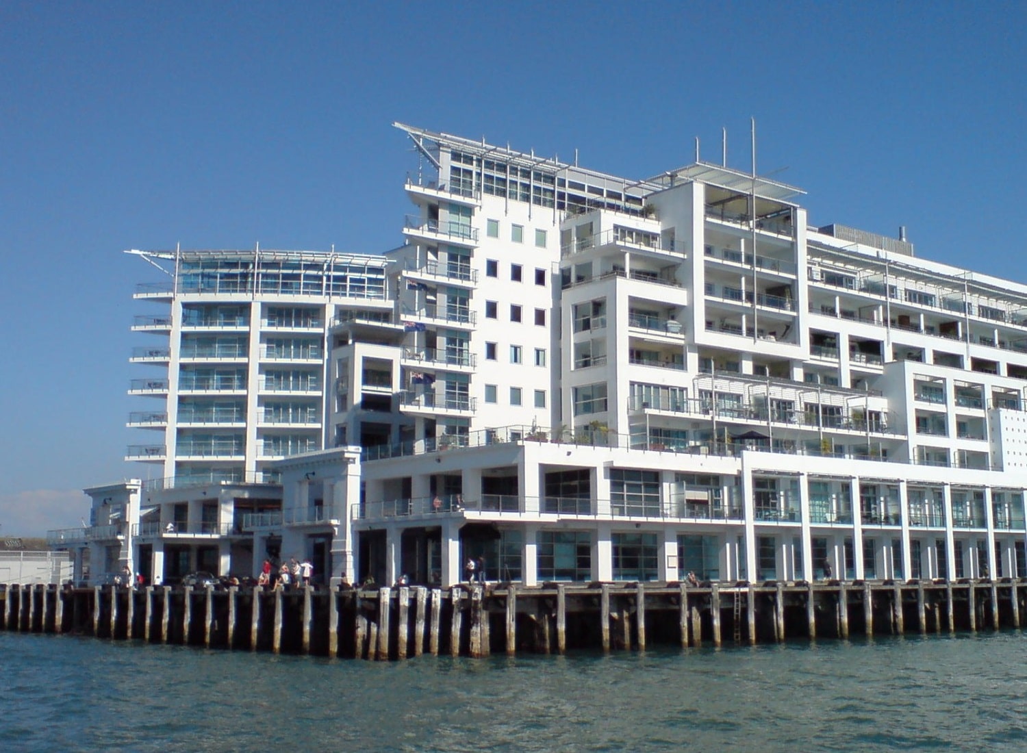 The Princes Wharf Auckland is subject to a marine environment, and therefore requires a heavy duty 3 coat system comprising Zincanode 402 zinc rich epoxy, Duremax GPE MIO epoxy intermediate coat with micaceous iron oxide and Weathermax HBR two pack polyurethane.