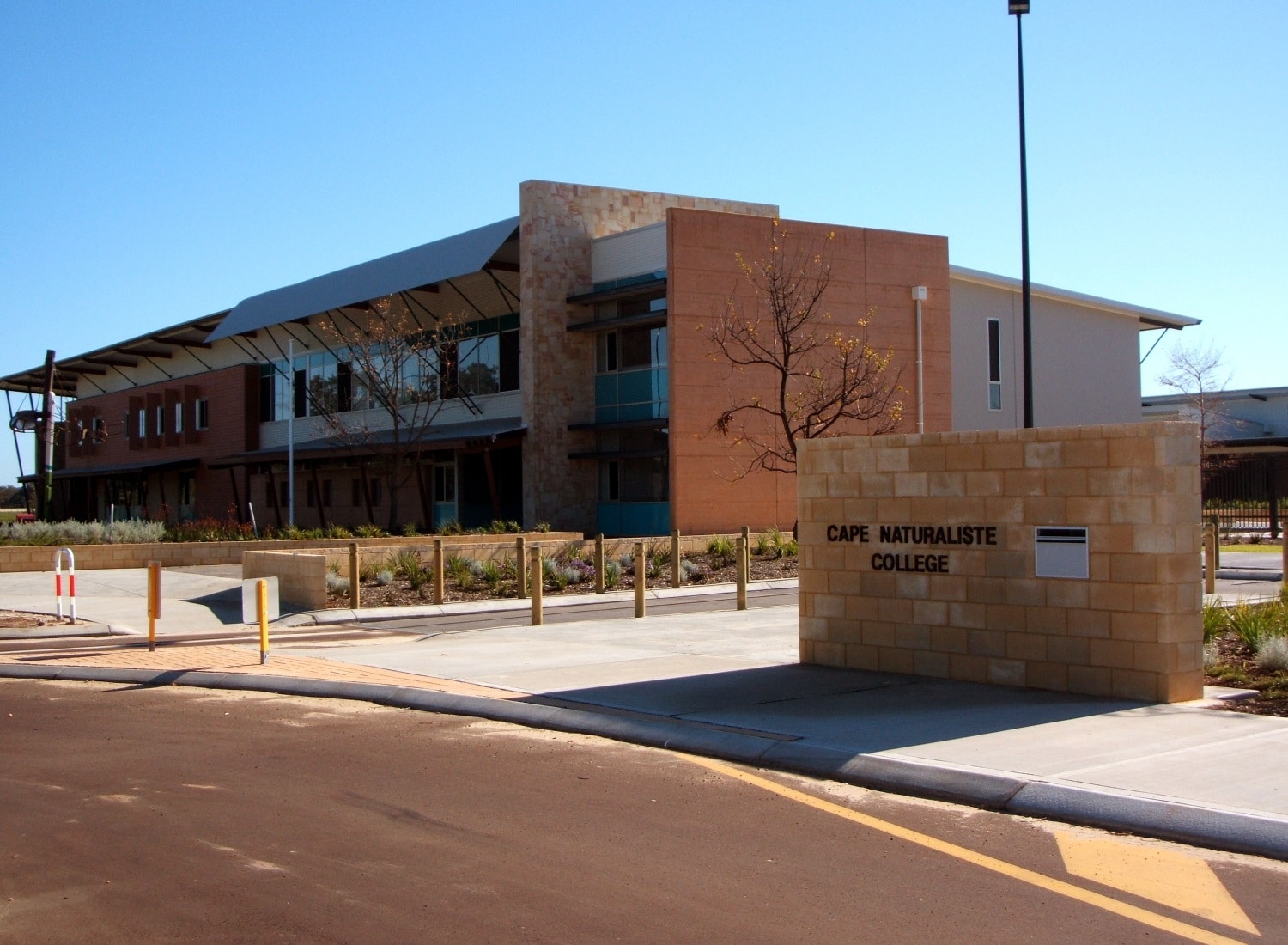 The structural steelwork of Cape Naturaliste College in Vasse, Western Australia, is protected by a heavy duty 3 coat system comprising Zincanode 402 zinc rich epoxy, Duremax GPE MIO epoxy intermediate coat with micaceous iron oxide and Weathermax HBR two pack polyurethane.