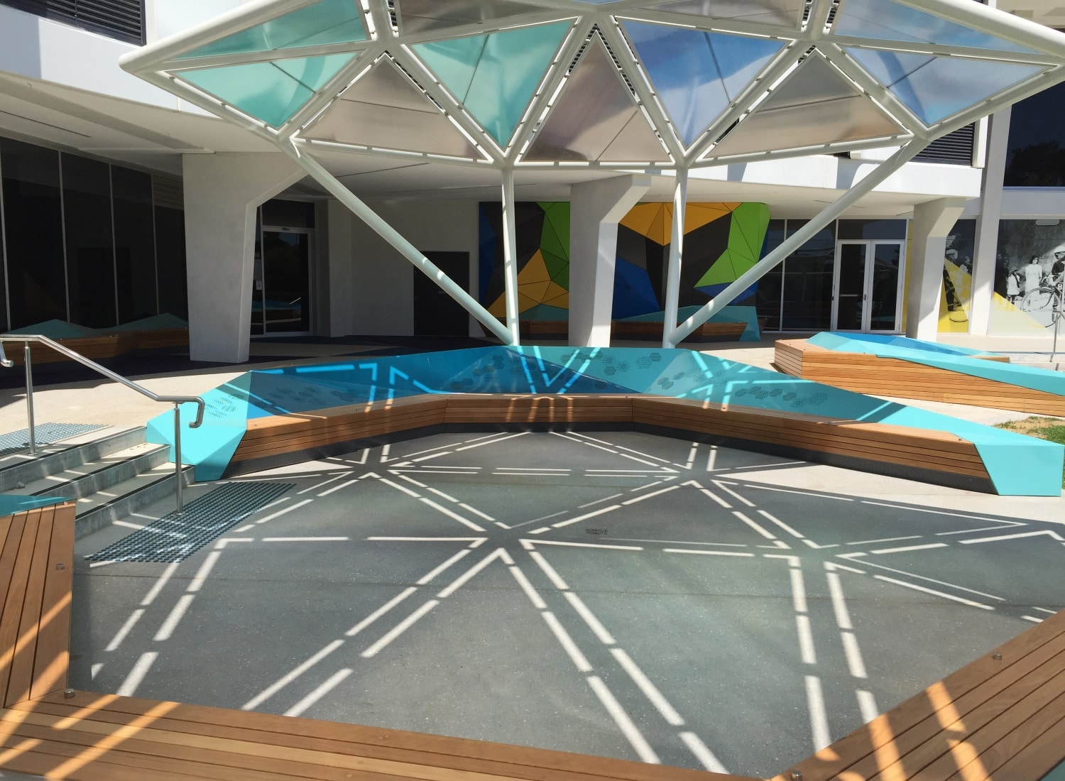 Curtin University's multicoloured facade is protected against graffiti, corrosion and UV.