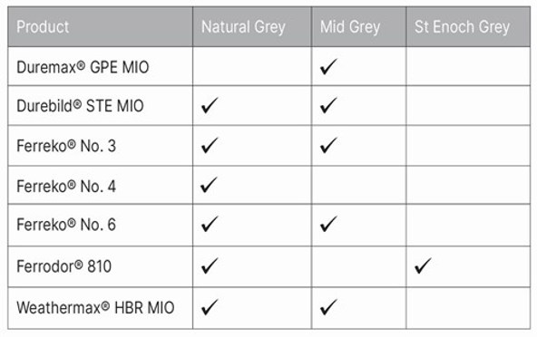 Dulux Protective Coatings come in a variety of colours within the colour ranges below